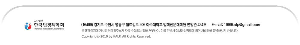 제5조(수상자격) ① 우수상은 본 학회 회원으로서 법과 정책연구에 논문게재자를 대상으로 한다.